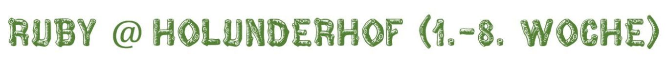 Diese Fotos sind während Ruby's Welpenzeit auf dem schönen Holunderhof entstanden. Alle Fotografien sind urheberrechtlich geschützt. Das Urheberrecht liegt bei Ruby's Züchterinnen von der Holunderhofbande (Katja Hilscher und Sybille Schreiber).