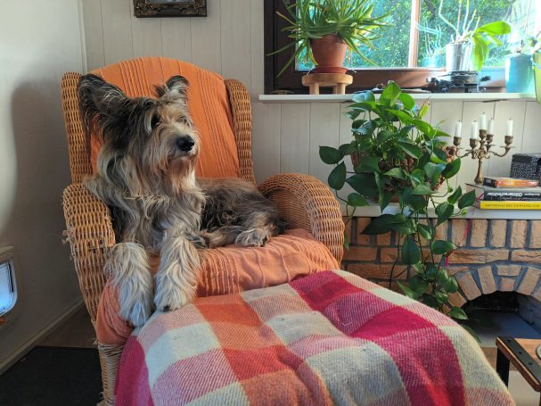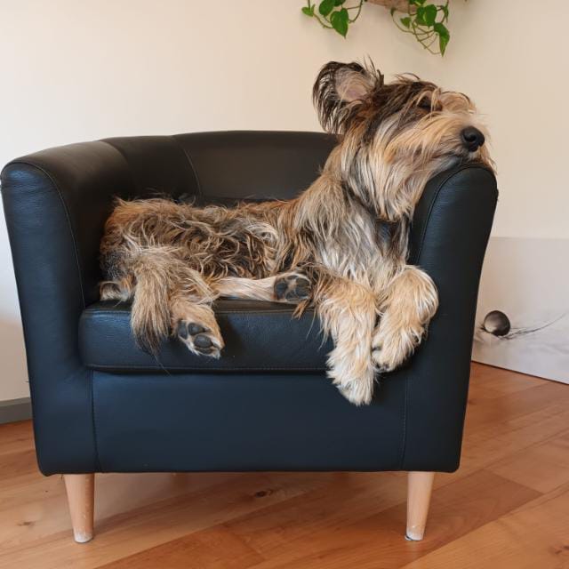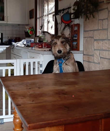 Ruby liebt es von klein auf auf Stühlen oder Bänken zu sitzen. Hier sind die eindeutigen Beweise dafür.